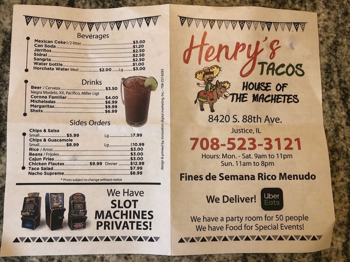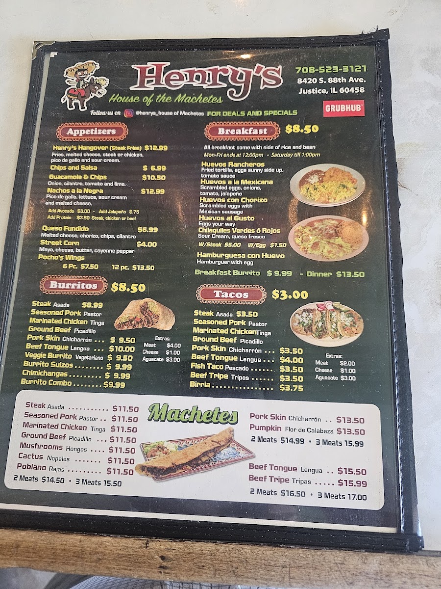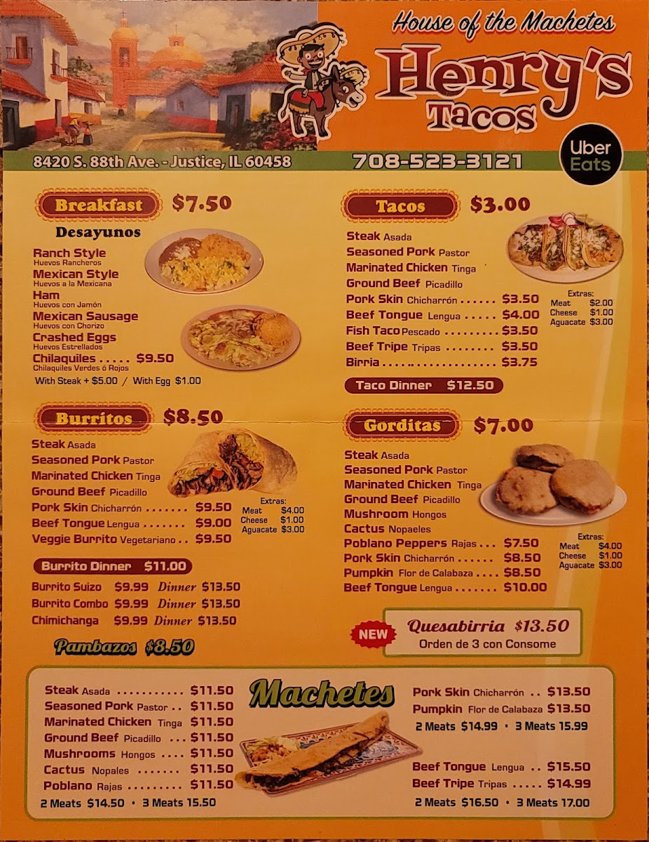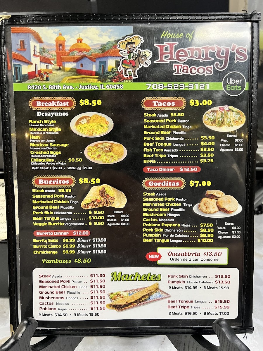The menu highlights a variety of options including classic tacos, flavorful quesadillas, and satisfying tortas, alongside simple but refreshing beverages like fresh orange juice or traditional Horchata. These choices reflect the straightforward, unfussy approach Henry’s Tacos takes in crafting meals that feel both satisfying and genuine.